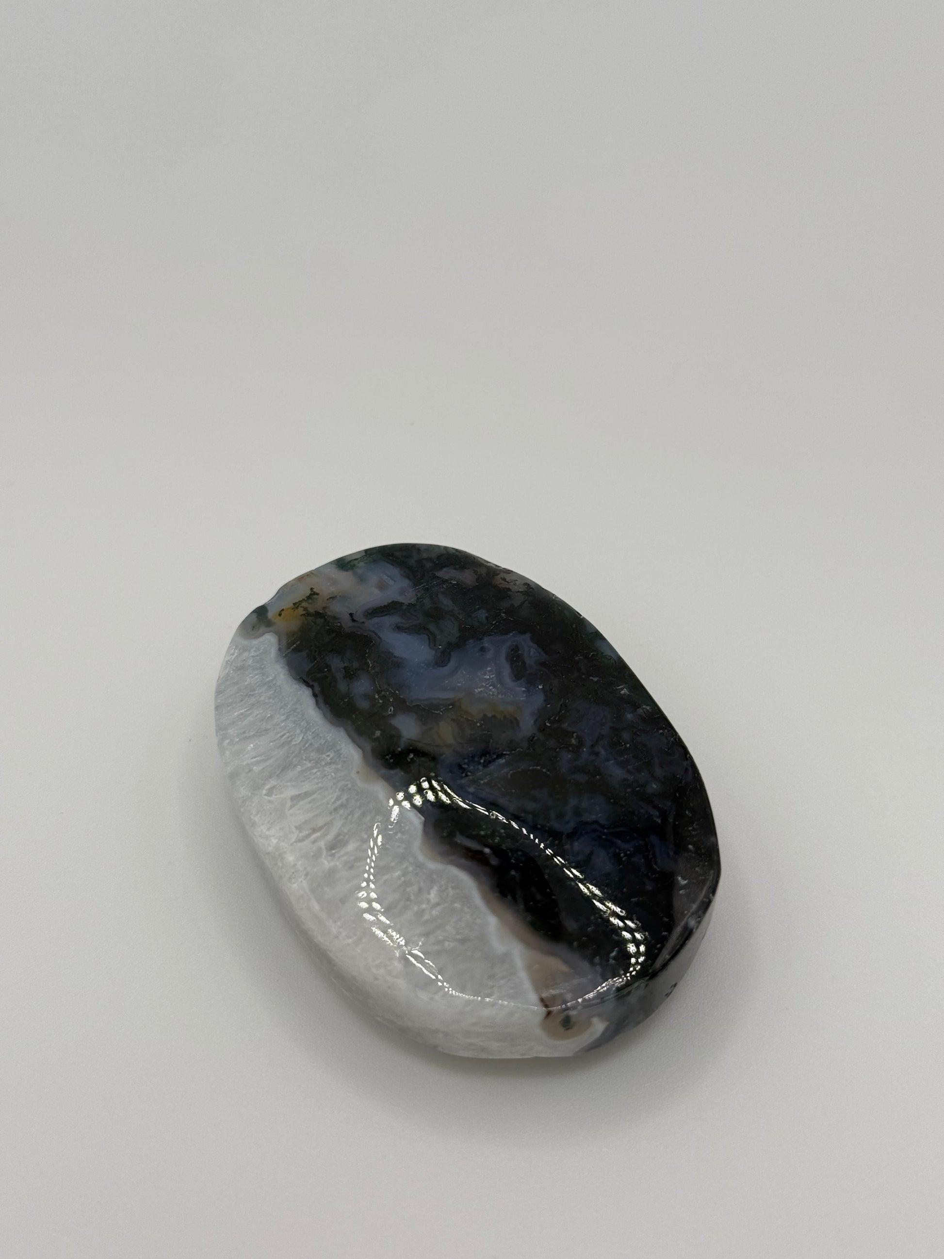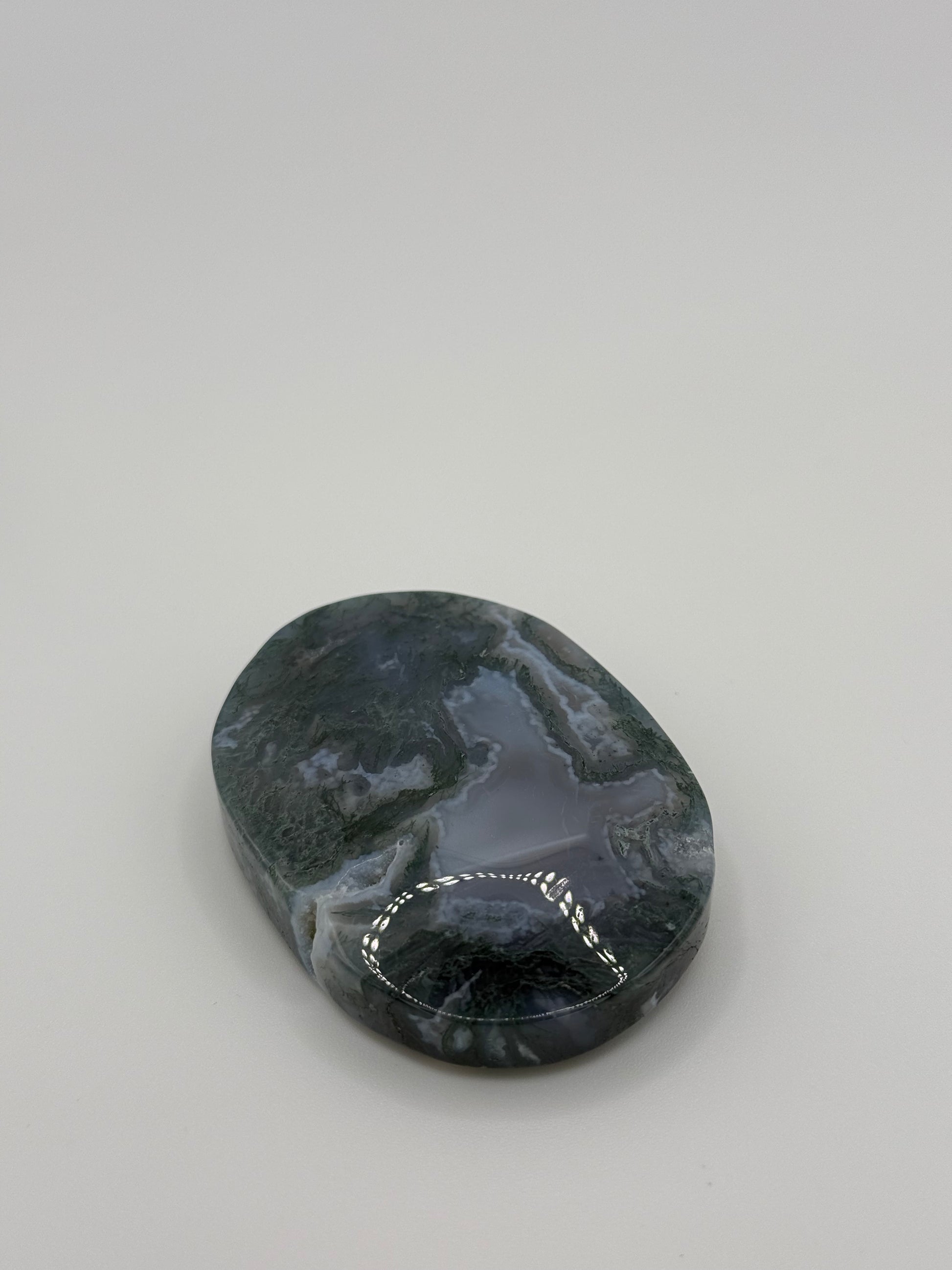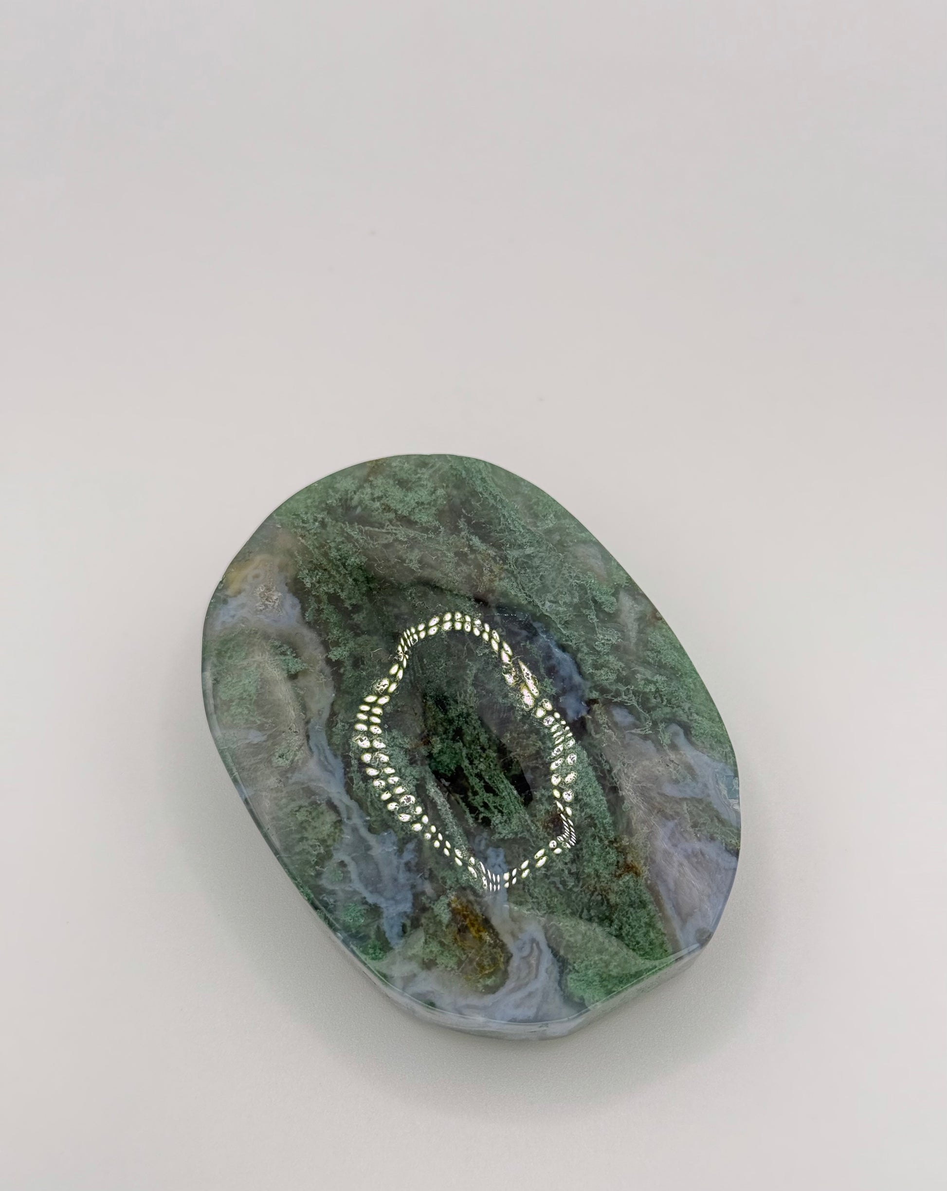 Moss Agate — the stone of new beginnings. Moss agate is associated with both the heart chakra and root chakra. This grounding, heart-opening stone radiates calm, tranquil energy. Moss Agate soothes anxiety, promotes emotional balance and invites abundance & growth. A gentle ally during times of change. Moss Agate nurtures patience, renewal, and deep inner peace.