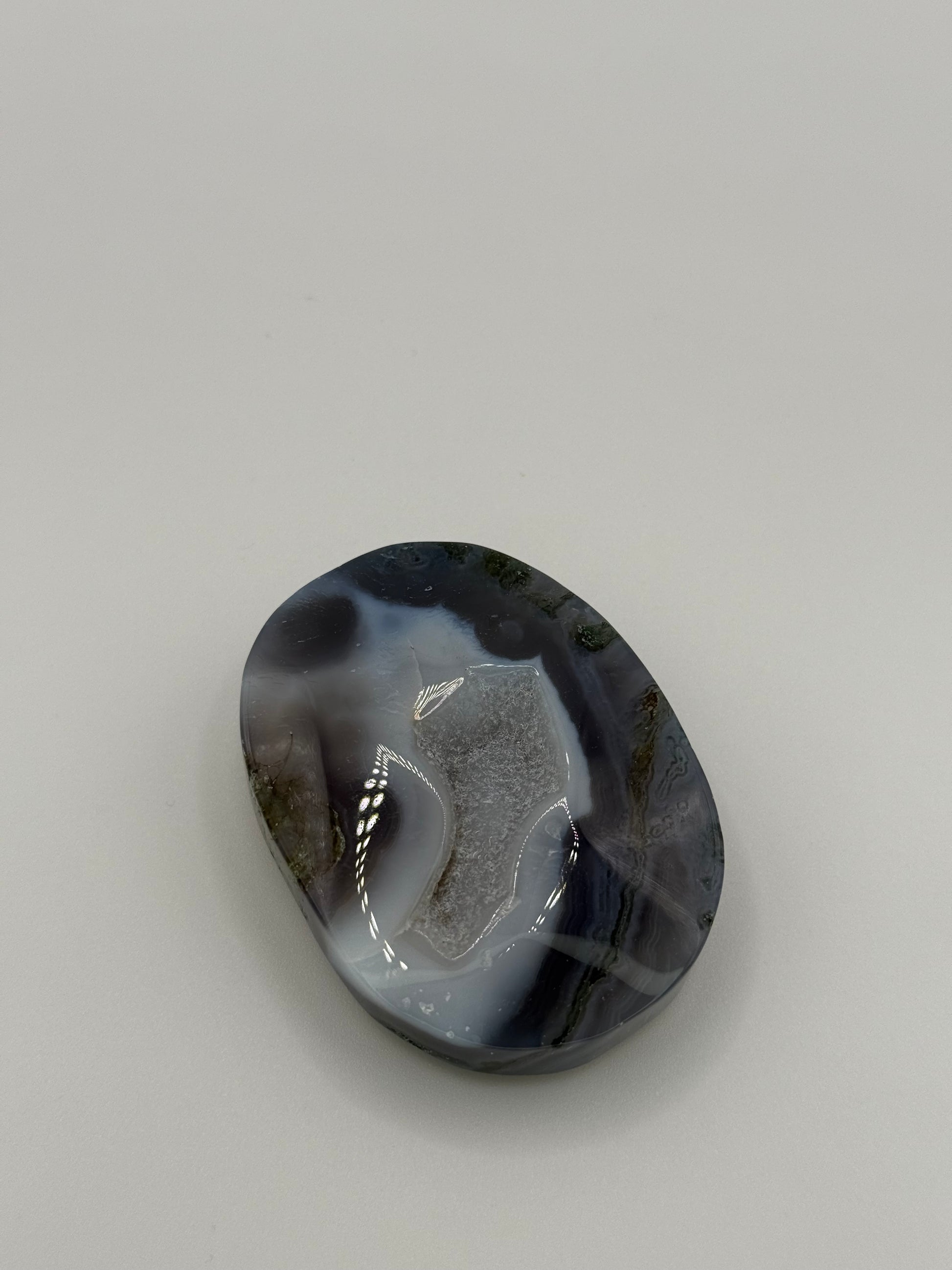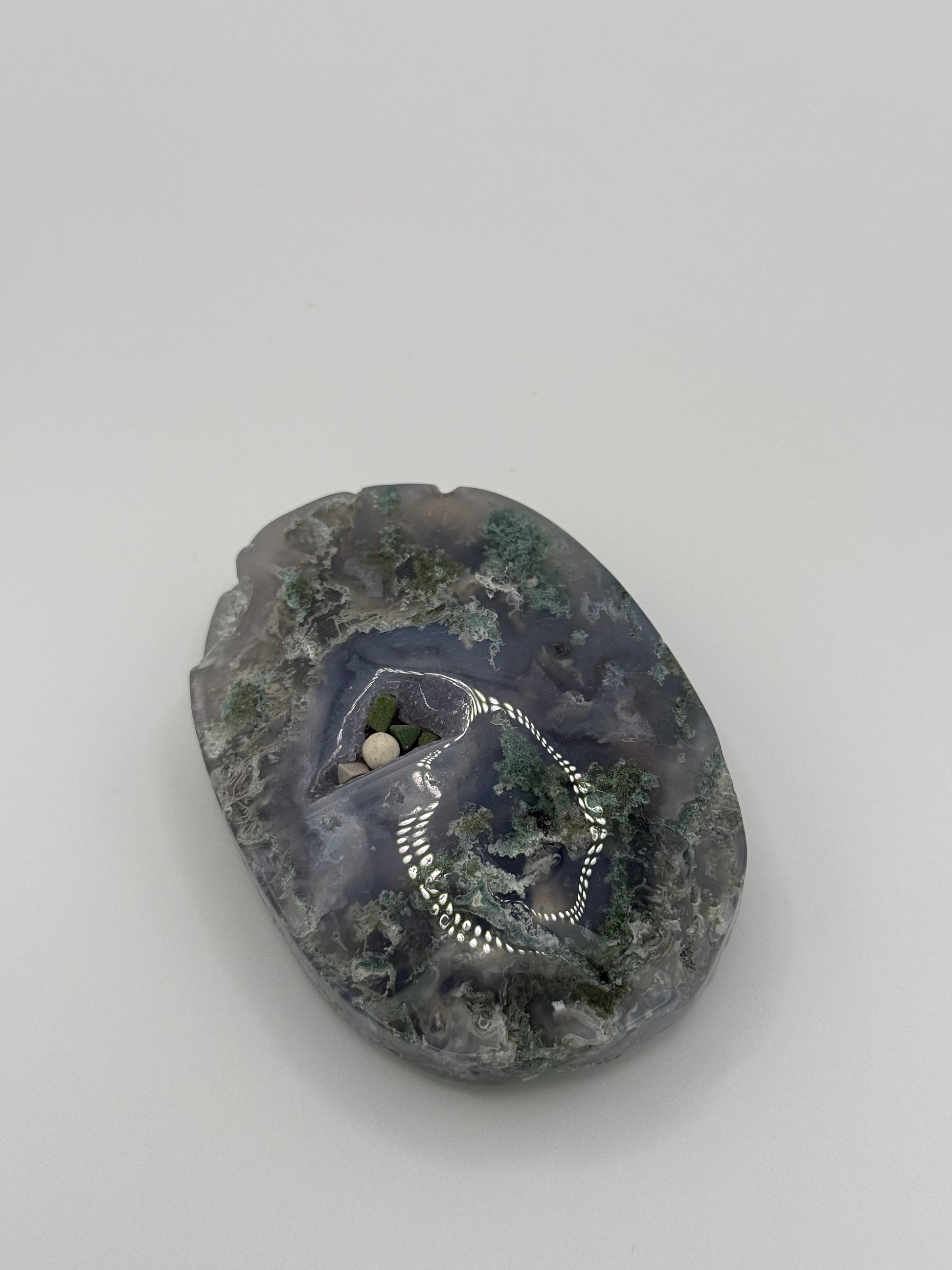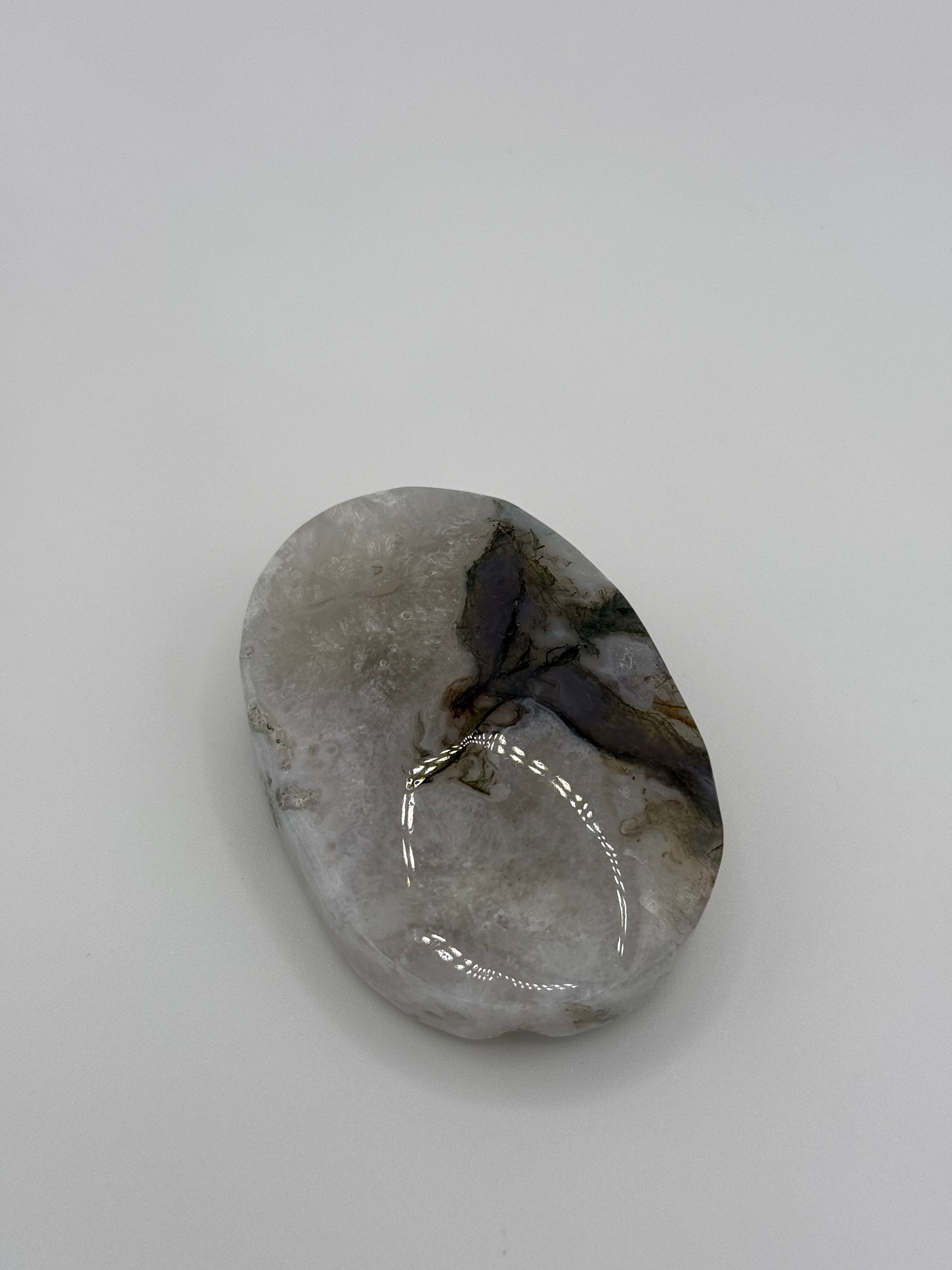 Moss Agate — the stone of new beginnings. Moss agate is associated with both the heart chakra and root chakra. This grounding, heart-opening stone radiates calm, tranquil energy. Moss Agate soothes anxiety, promotes emotional balance and invites abundance & growth. A gentle ally during times of change. Moss Agate nurtures patience, renewal, and deep inner peace.